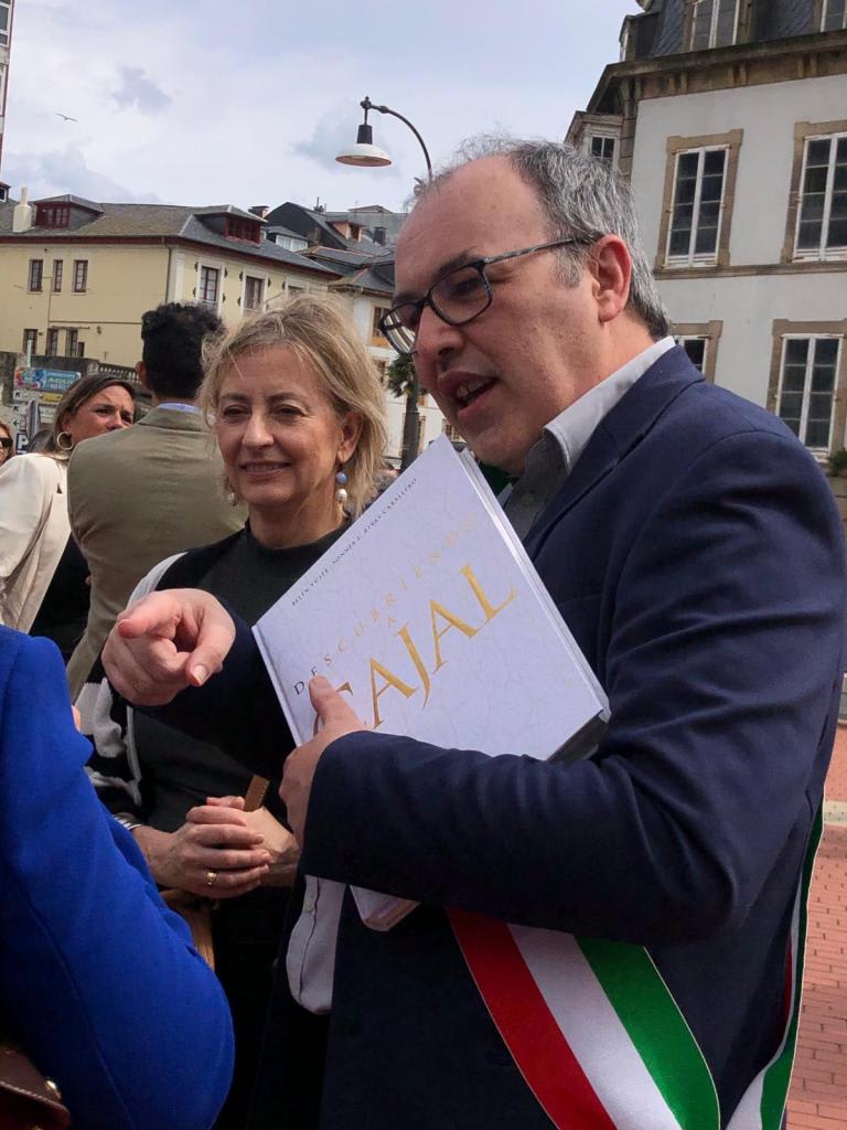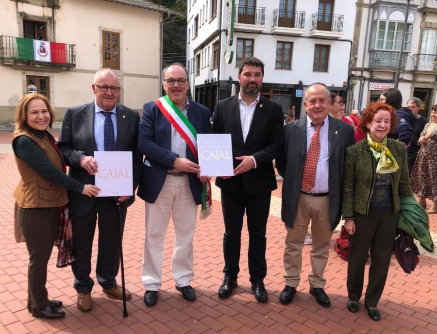 D. Florentino Aguas Arilla, Alcalde de Petilla de Aragón, ha regalado a los alcaldes de Corteno-Golgi y de Valdés-Luarca la edición institucional que han hecho del libro Descubriendo a Cajal.