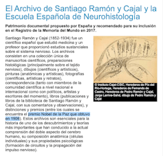 Finalizando 2017, la UNESCO incluyó los Archivos de Santiago Ramón y Cajal y la Escuela Neurohistológica Española en su programa Memory of the World del Patrimonio de la Humanidad para archivos y colecciones documentales.