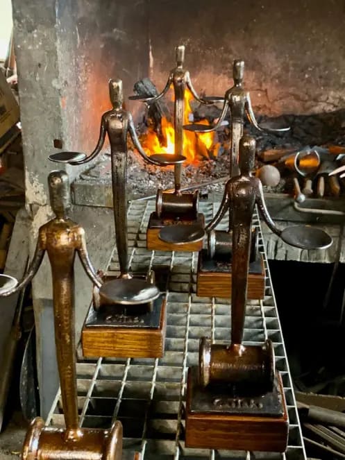 Una hermosa estatuilla en forja de hierro por el prestigioso escultor César Castaño, representativa de valores culturales con mención del nombre del premiado, para exhibir con orgullo.