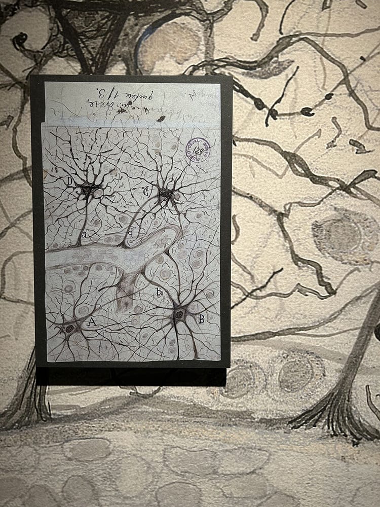 Los dibujos de Santiago Ramón y Cajal forman parte de la exposición “El Infierno y las Maravillas” en la Biblioteca Nacional, un lugar único y multidisciplinar, una parte de la biblioteca donde caben muchas bibliotecas, donde pasado, presente y futuro dialogan a través de los fondos y colecciones de la BNE.