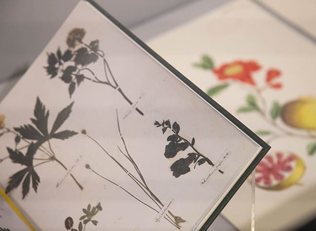 La combinación de niveles, contrastes y planos simbólicos que conviven y dialogan aparece en la primera vitrina de la exposición. Su contenido está ordenado según la idea del historiador del arte Aby Warburg, que no defendía el orden cronológico o temático, sino lo que llamaba “la ley del buen vecino”. Es decir, la afinidad conceptual o simbólica. Así, junto al ‘Atlas Mnemosyne’ de Warburg encontramos ‘Las Bibliotecas de la Antigüedad’ de Justus Lipsius (en una edición de Editorial Castalia de 1948), la historia de la librería ‘Shakespeare and Company’ de Sylvia Beach, la reproducción de una carta autógrafa de Miguel de Cervantes o los exlibris de Enric Granados y Leonor Miquel.