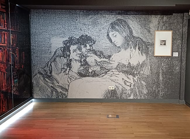 Por su parte, Jorge Carrión ha invitado a descender a este lugar –situado en la planta -1 de la BNE– para, como los héroes clásicos, “encontrar un tipo de conocimiento que no se puede encontrar en la superficie” o, como el Borges ‘personaje’ que baja a un sótano para ver el Aleph, que es tanto el infierno como la maravilla. En la primera sala de la exposición encontramos un facsímil de un grabado de Goya, ‘La lectura’, “contrapunteado por una ampliación gráfica”. “Esos dos planos recorren toda la exposición: simbólicamente representan el lector individual y la idea del lector, como constantemente se comparten ecos entre la biblioteca personal y las grandes bibliotecas, entre la experiencia propia y única y la experiencia universal”, ha explicado.