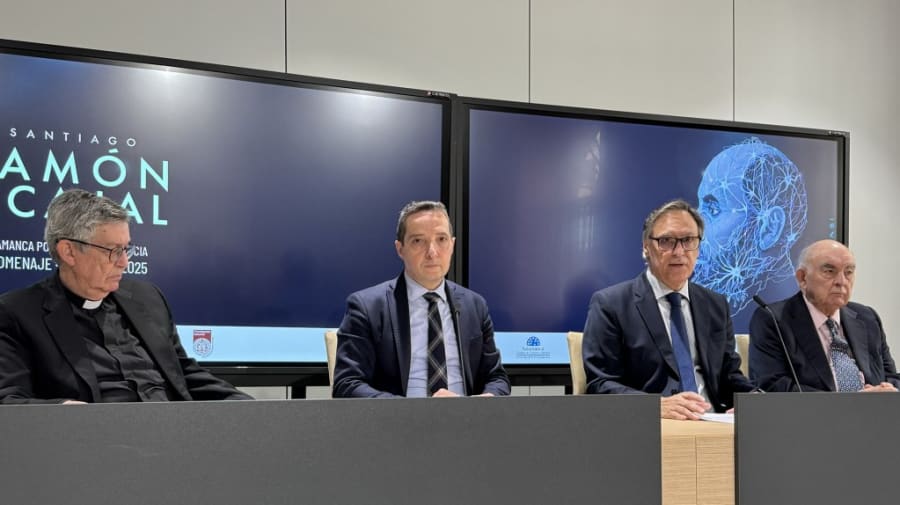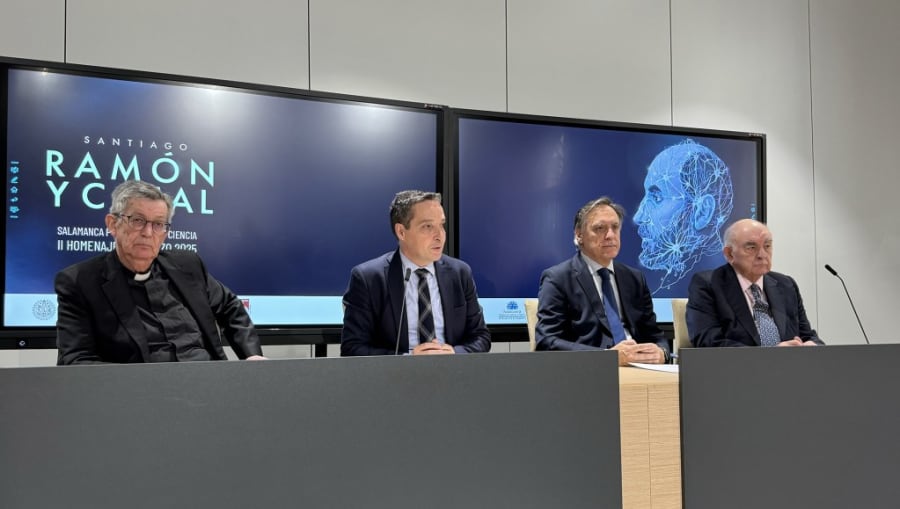 El rector de la Universidad de Salamanca, Juan Manuel Corchado, ha presentado las II jornadas “Salamanca: por Cajal y la Ciencia” en una rueda de prensa en la que ha estado acompañado por el alcalde de Salamanca, Carlos García Carbayo; el rector de la Universidad Pontificia de Salamanca, Santiago García-Jalón de la Lama; y el vicepresidente del consejo científico de la Fundación Ramón Areces, José María Medina.