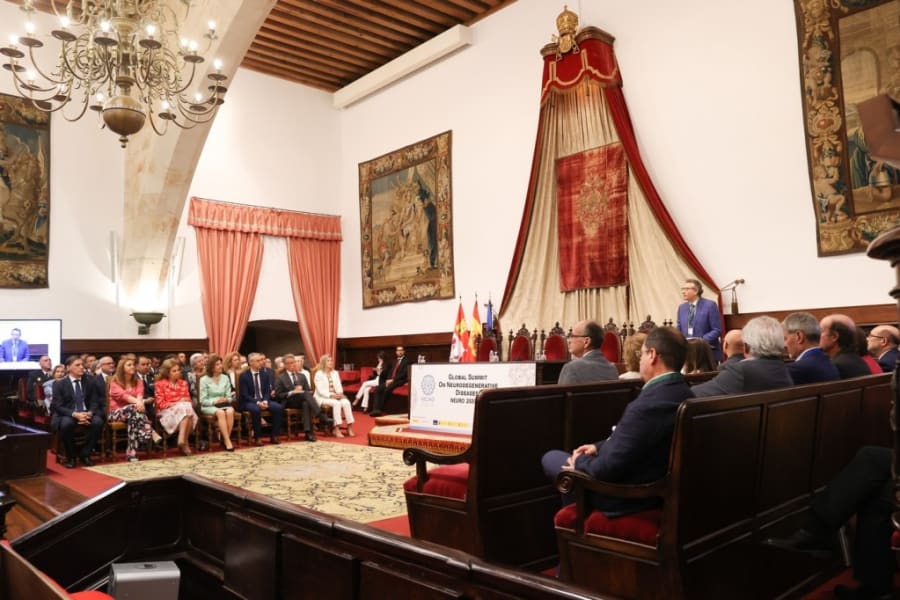 Con motivo del Día Mundial de la Esclerosis Lateral Amiotrófica (ELA), S.M. la Reina Doña Sofía preside este martes el Global Summit Neuro 2020/2022, que aborda los últimos avances de la investigación en Alzheimer y otras enfermedades neurodegenerativas como Parkinson, Huntington y ELA.** S.M. la Reina Doña Sofía estará acompañada por la Reina Silvia de Suecia**, que con su viaje a España muestra su compromiso con la investigación en este tipo de dolencias. En el acto inaugural participarán además la Delegada del Gobierno en Castilla y León, Virginia Barcones; el alcalde de Salamanca, Carlos Manuel García Carbayo; el rector de la Universidad de Salamanca, Ricardo Rivero; el director científico de la Fundación CIEN y director del Global Summit, Pascual Sánchez Juan; y el director científico del área de Enfermedades Neurodegenerativas del CIBER (CIBERNED), Adolfo López de Munain.